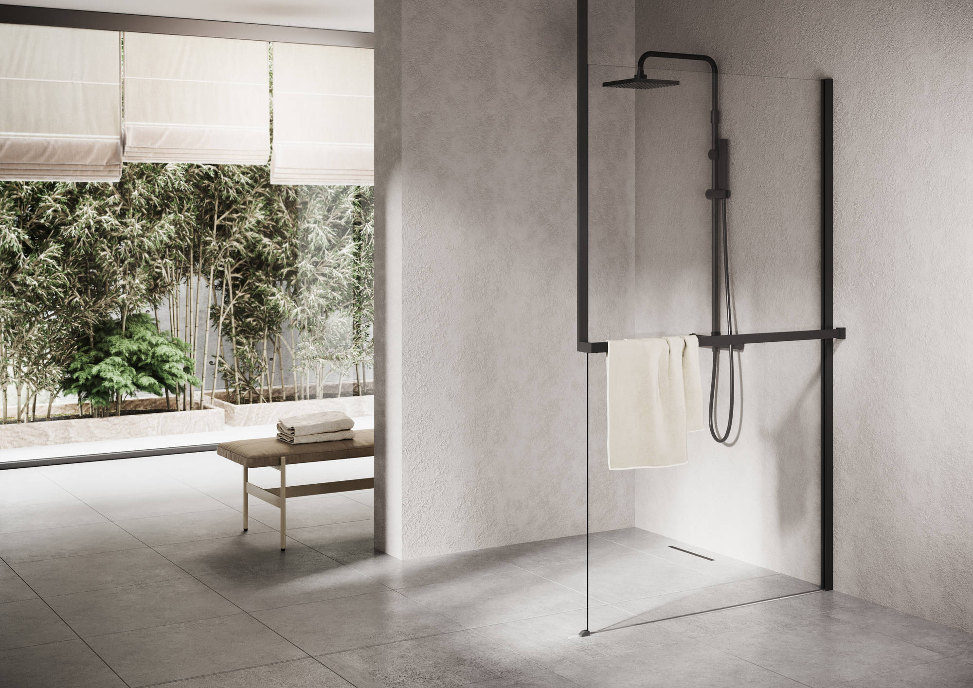 Met het Ben Delphi profiel met plafondsteun creëer je een ruimtelijke en stijlvolle sfeer in jouw badkamer. Dankzij de bijbehorende handdoekhouder heb je de handdoek gelijk bij de hand zodra je de douche uitstapt.