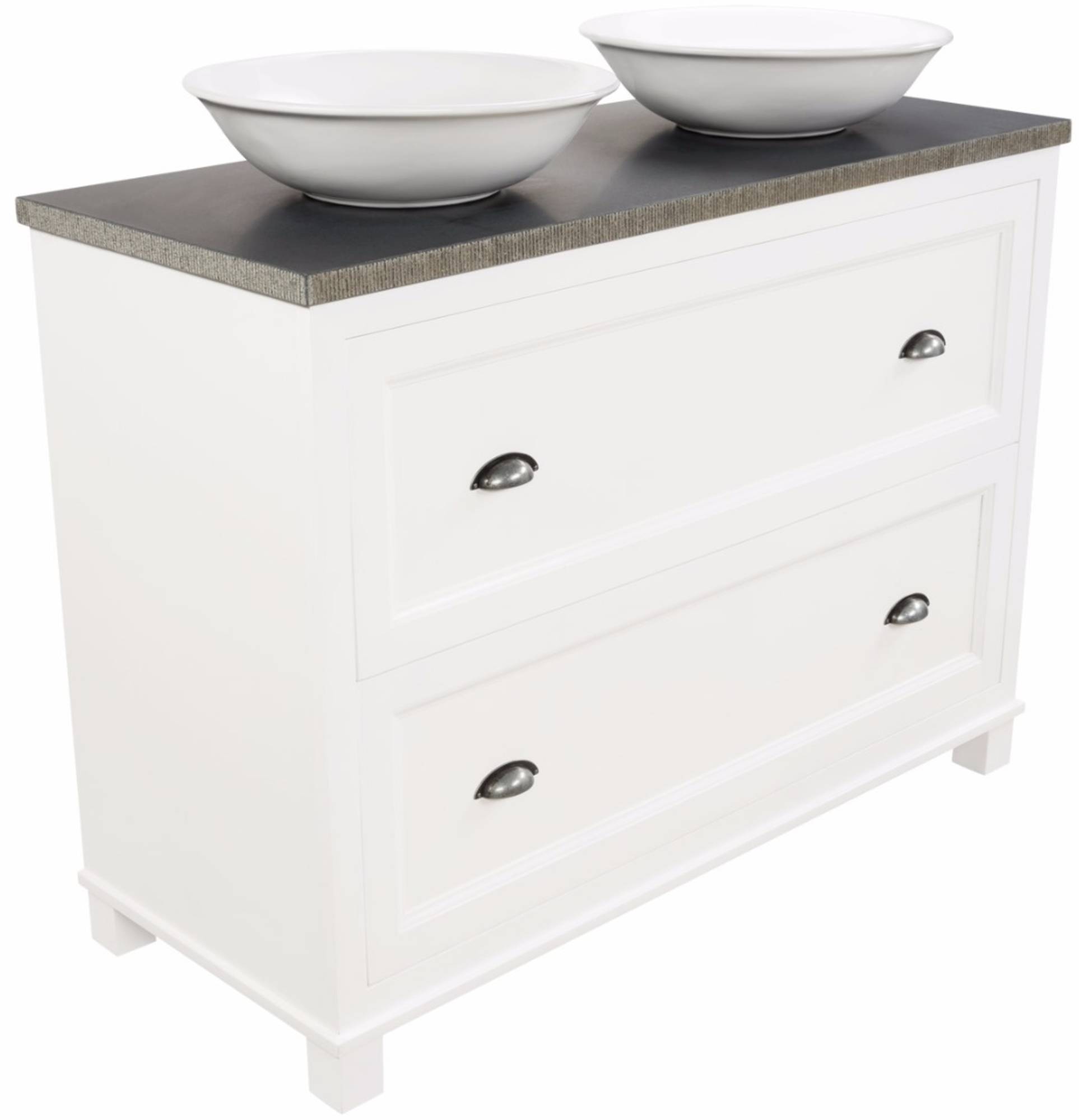 De Ben Maison meubelset bestaat uit een prachtige, witte ladekast met een granieten blad en twee waskommen. Met deze meubelset creëer je gelijk een warme sfeer in de badkamer.