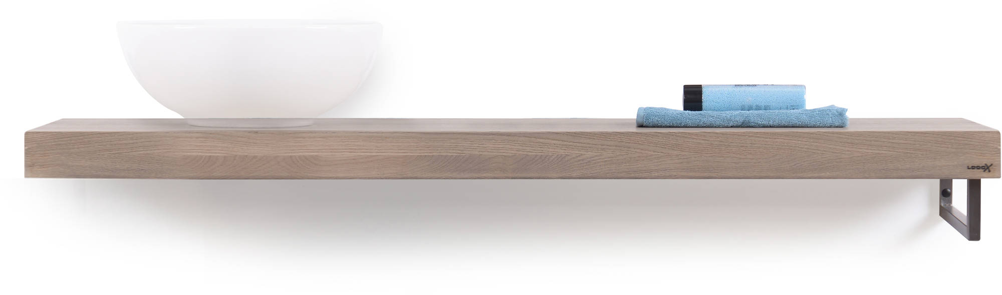 Looox Wooden Base Shelf Solo 140 cm Houder Rechts Old Grey/RVS