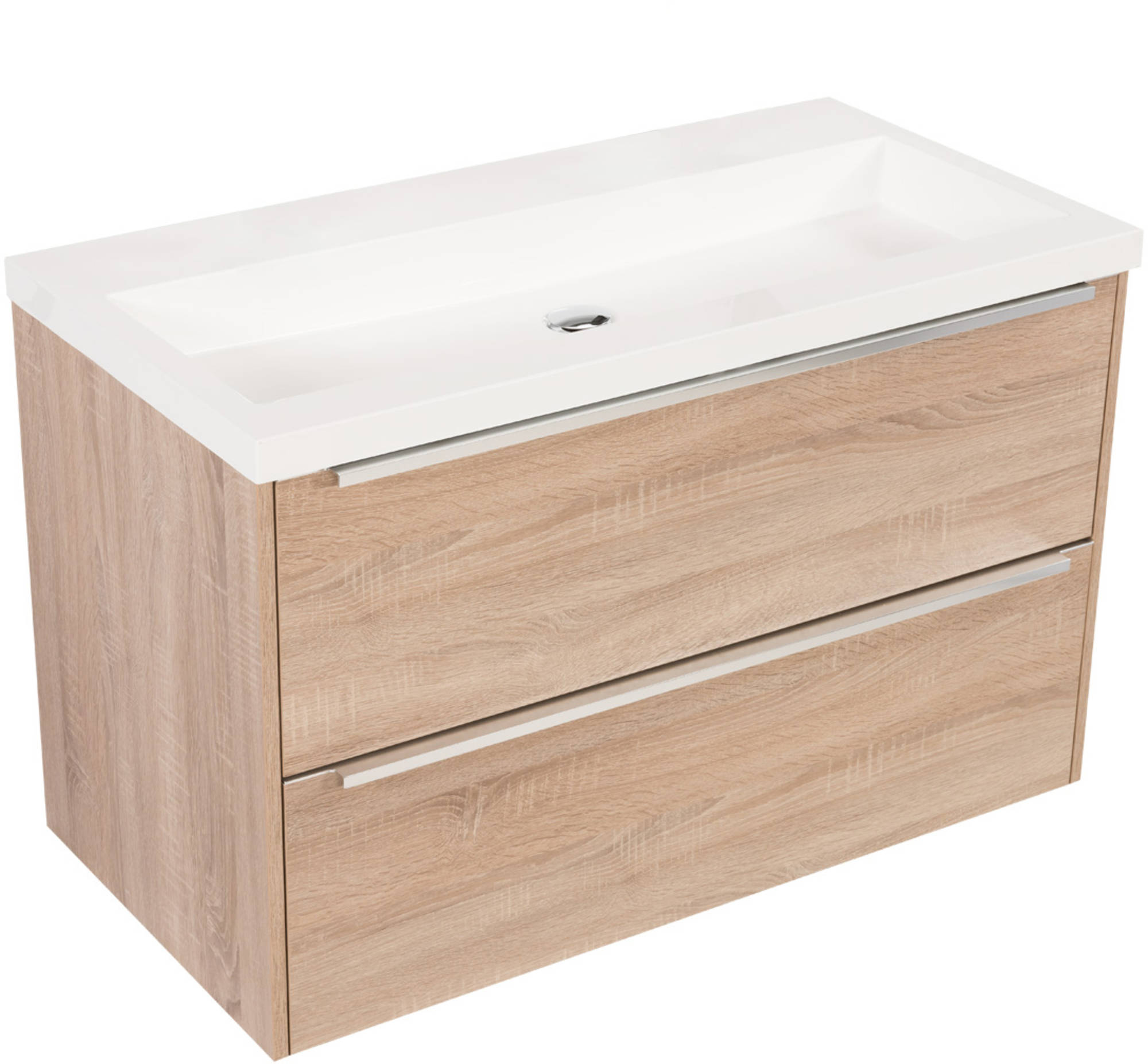 Saniselect Socan meubelset 2 lades met mineraalmarmere wastafel 100cm Bardolino Eiken Zonder Kraangat