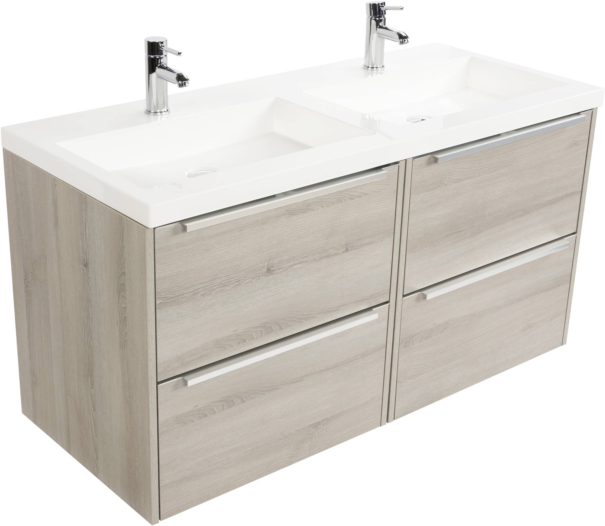 Saniselect Socan meubelset 4 lades met dubbele mineraalmarmere wastafel 120cm Litho Grijs