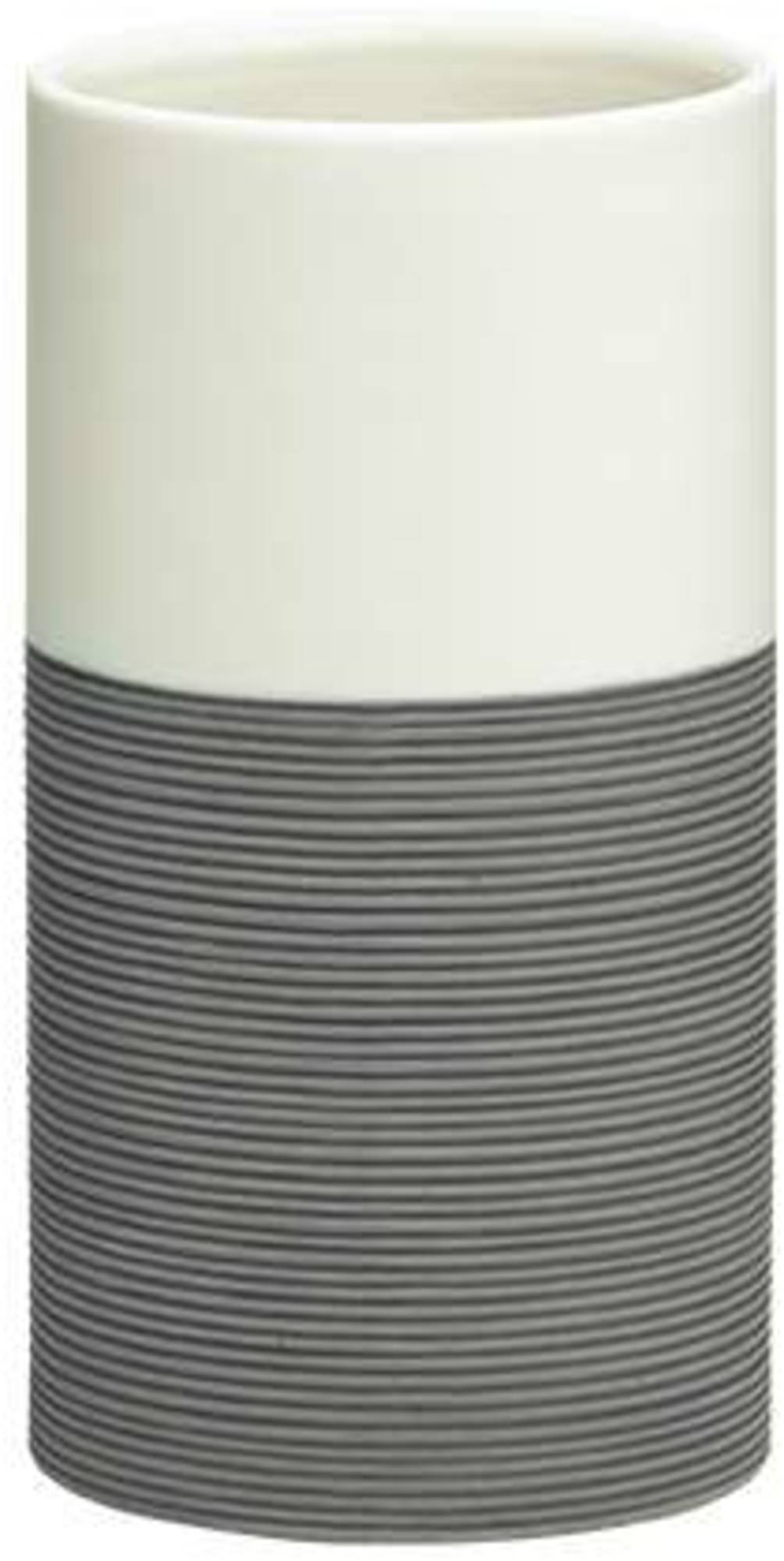 Beker Doppio+ 6,7 x 12,8 cm porselein grijsDe combinatie van de grijs kleurige geribbelde onderzijde en gladde witte bovenzijde